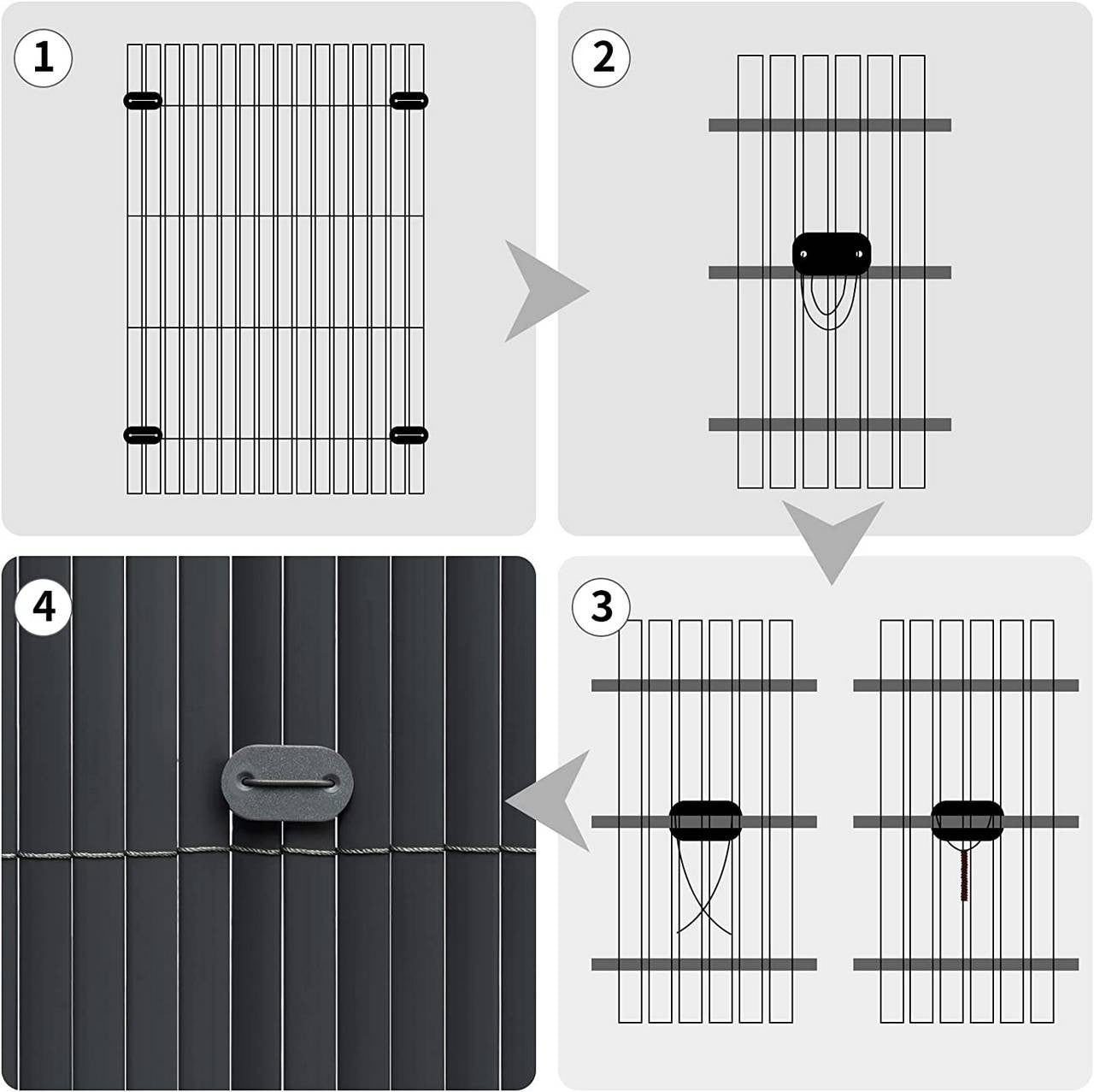 - Makkelijk te monteren: De privacyschermmat kan in een handomdraai worden bevestigd of verwijderd met de meegeleverde hardware. Overhang bij het installeren de lamellen van het hek niet, anders kunnen sommige lamellen door de zwaartekracht naar beneden vallen.